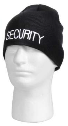 Deluxe Acrylic Skull Cap is now embroidered with "Security" across the front. The perfect fit for security stationed outdoors in cold weather. Made from 100% Acrylic, this Skull Cap won't itch and will keep your head and ears warm.