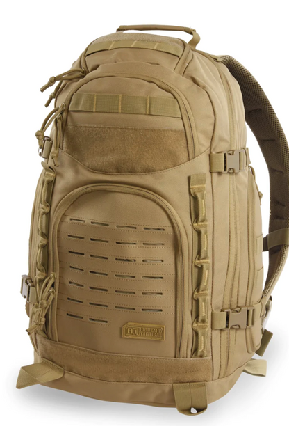 The FOXTROT 3 day pack has it all! It pulls everything you are looking for together in a 3 day pack. Its size allows heavy loading and customization to keep you on the trail. For starters, the rugged look and build gives you 2 MOLLE designs with 2 types of MOLLE webbing to utilize to your advantage, as well as braided nylon hooks to carry additional gear. The 5 external pockets give you storage options to organize your gear and the padded Tricot lined pocket allows your glasses, phone, or other personal items to be tucked away safely. The hook and loop patch holders allow you to personalize the look of your pack to make it your own. This pack is built for the long haul with mesh back padding and shoulder straps to help with ventilation. The adjustable sternum strap and waist strap provide that extra support when needed.