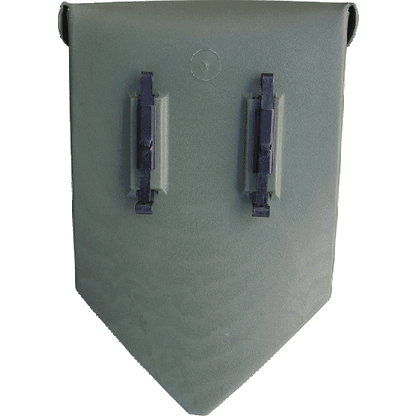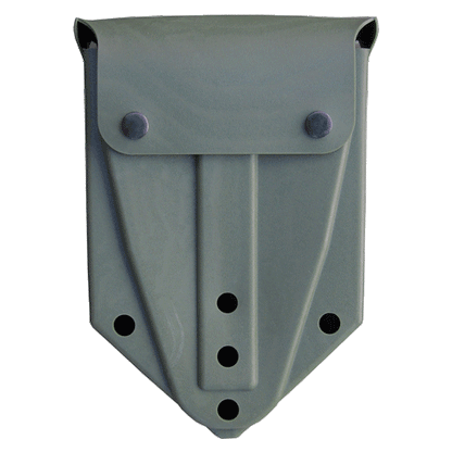 Manufactured for the US folding E tool/shovel. The plastic vinyl material gives this carrier durability, and flexibility. Holes in the bottom of the pouch allows for drainage and air flow to help prevent corrosion of your shovel. Measures 6 ½” long x 9 ¾” high from top to tip and 1 ½” wide. Belt clips on the back allows this cover to attach to your pistol belt, or pack. NSN: 8465-00-001-6474. This cover also fits the German NATO entrenching tool/shovel. Used Condition. MADE IN THE U.S.A.